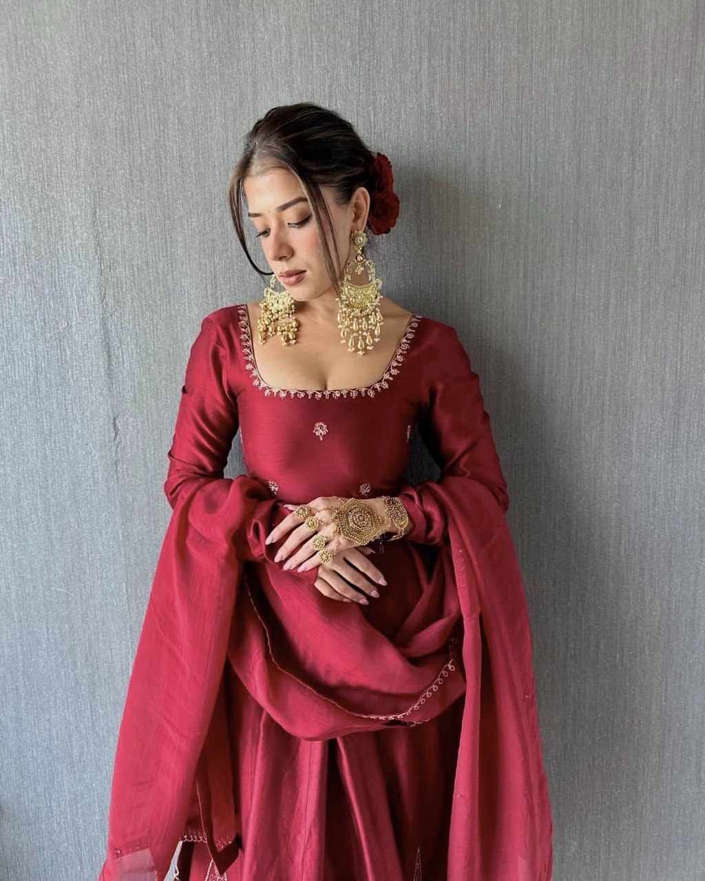 Reviews for KD 1505 Red Anarkali Natural Crep With Thred & Sequnce work Dress