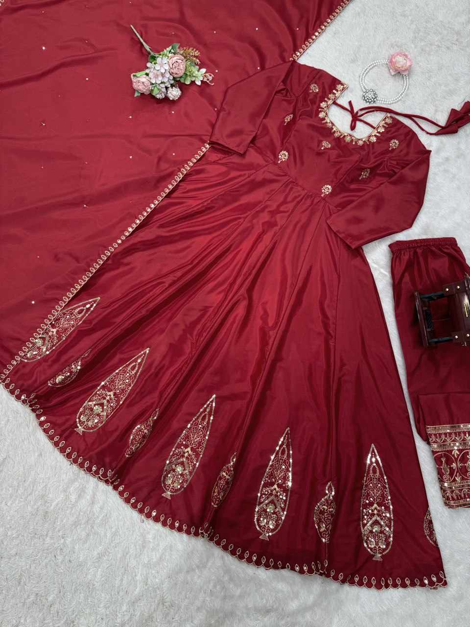 | Name : | KD 1505 Red Anarkali Natural Crep With Thred & Sequnce work Dress |