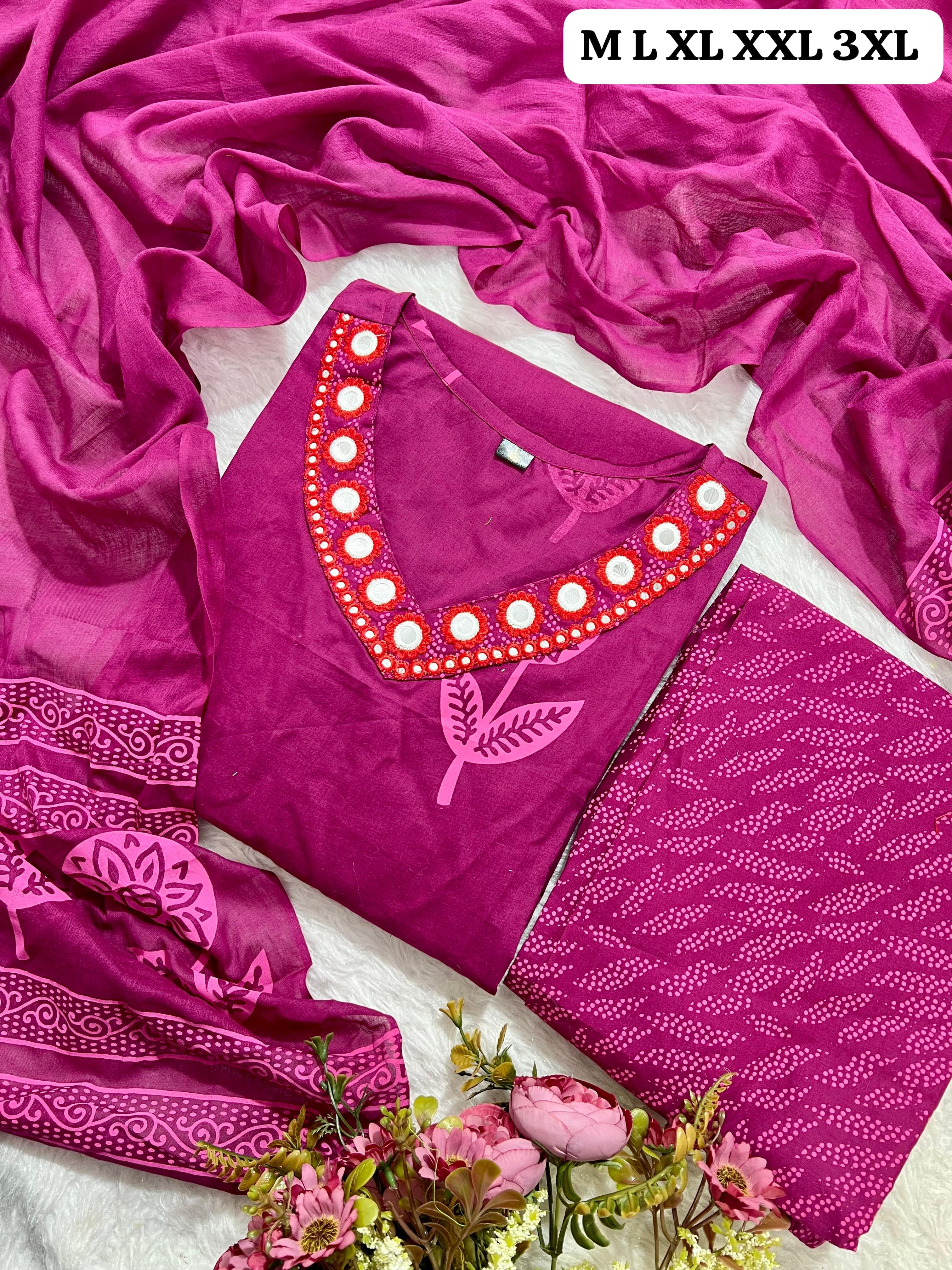 SF 31 Pure Fine Cotton Fabric Embroidery Work Kurti with Pant 558