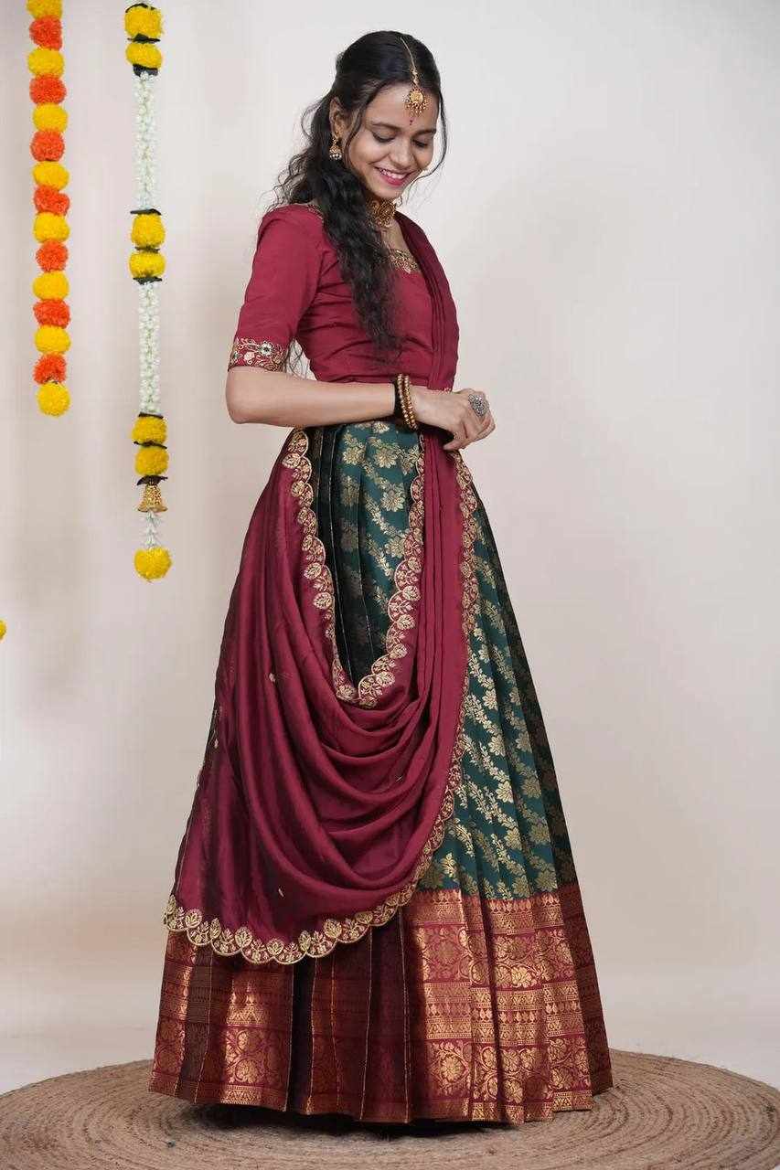 Reviews for KPW 332 Green Kanjiveram Silk Zari Lehanga