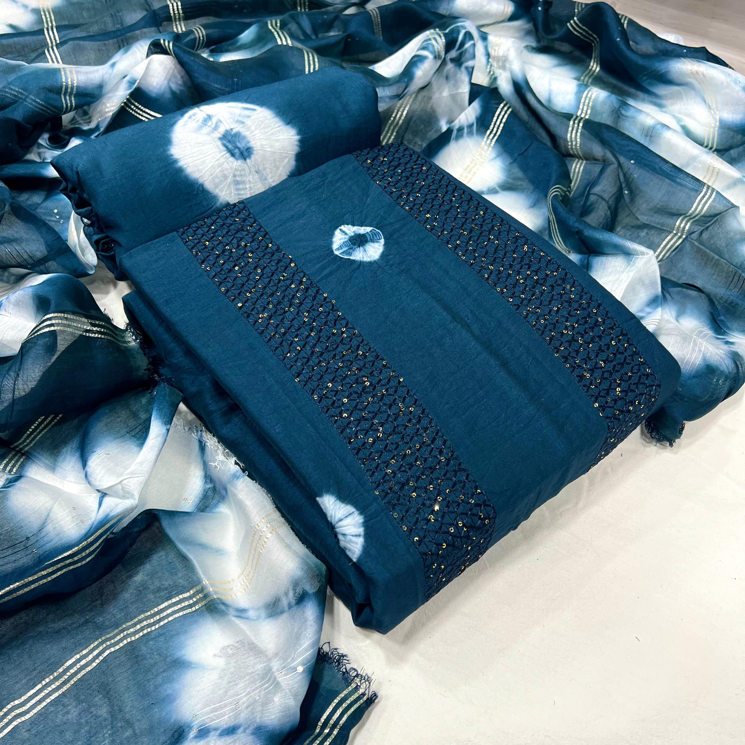 KT MAHARANI Blue Pure viscose Cotton Bandhni sequence work Dress Materail has been successfully added to your cart .