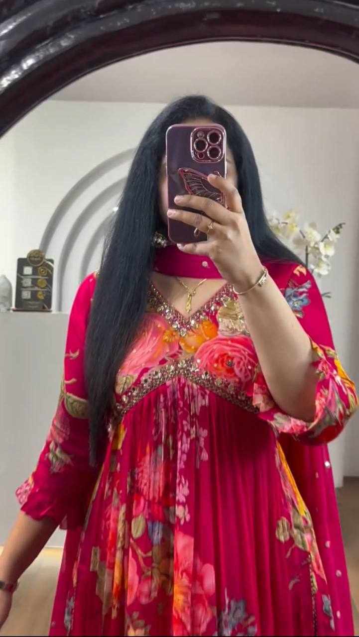 Work: Embroidery Thread Work & Floral Print