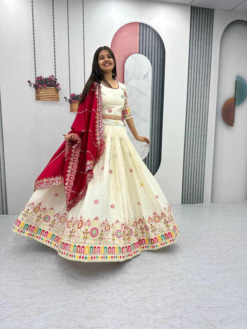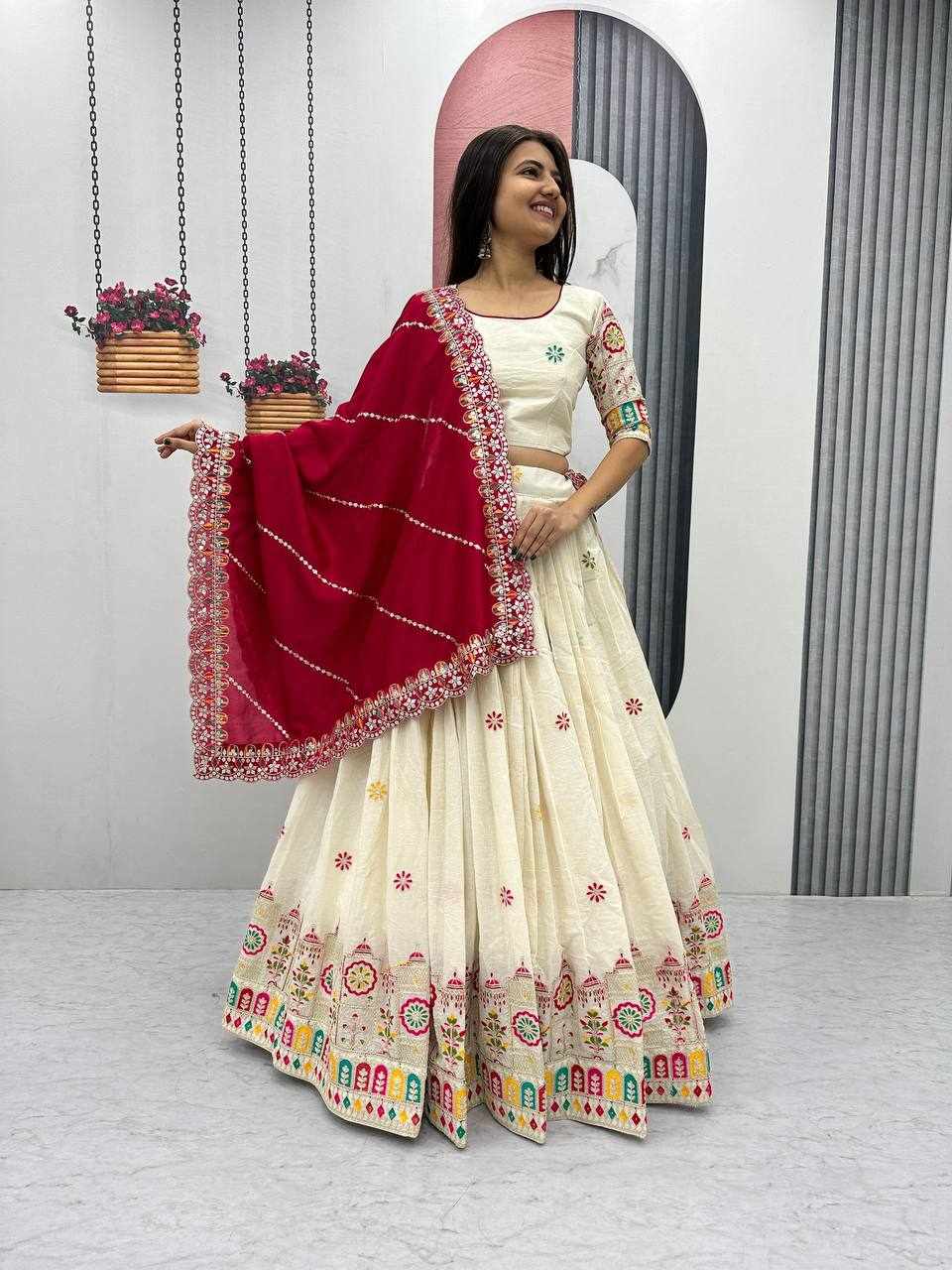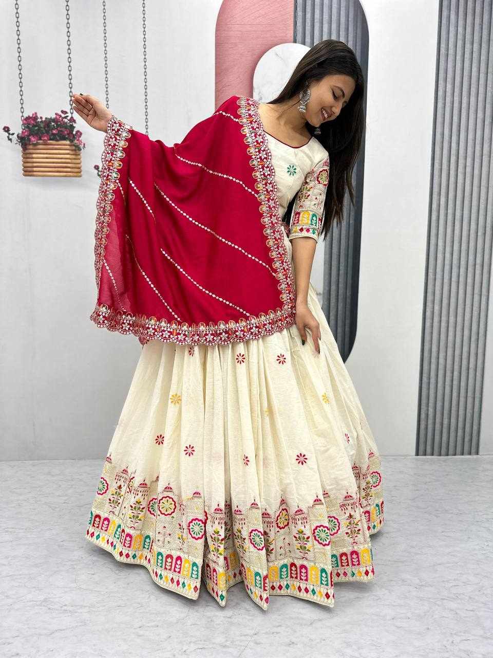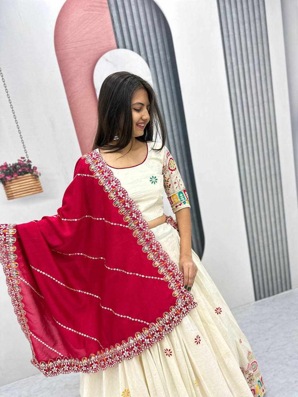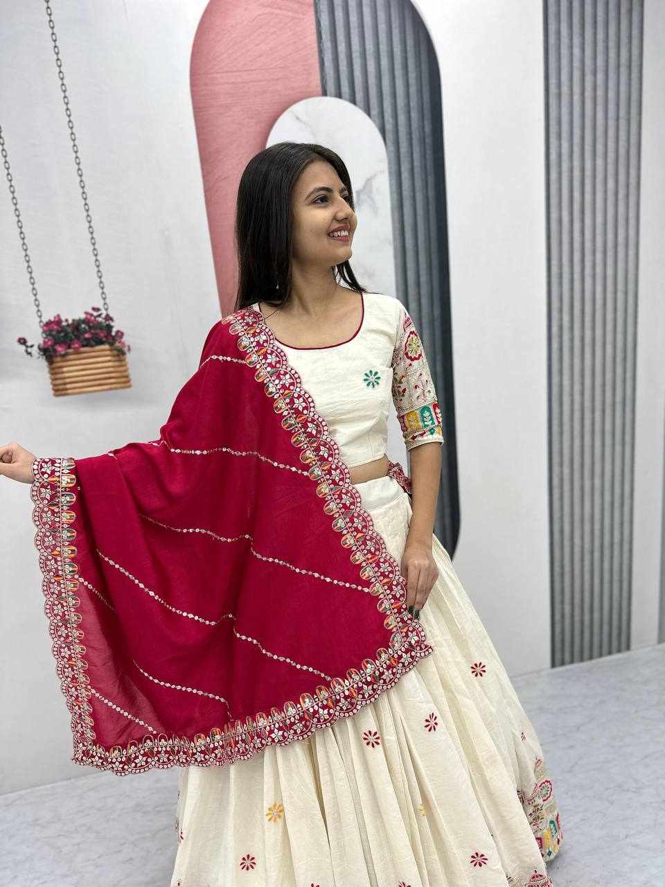 PC 510 Pure Cotton Embroidery Chain Work Lehenga