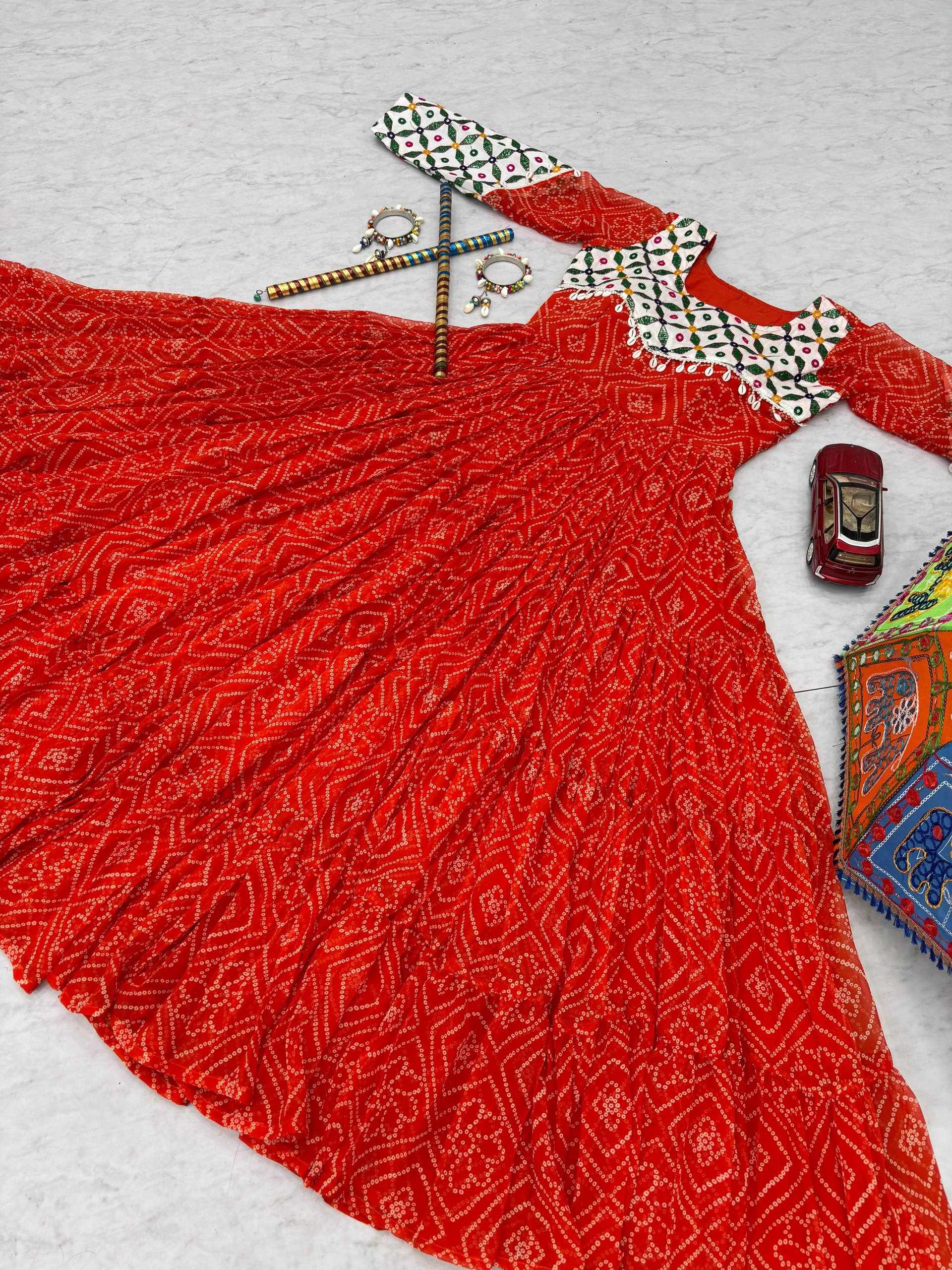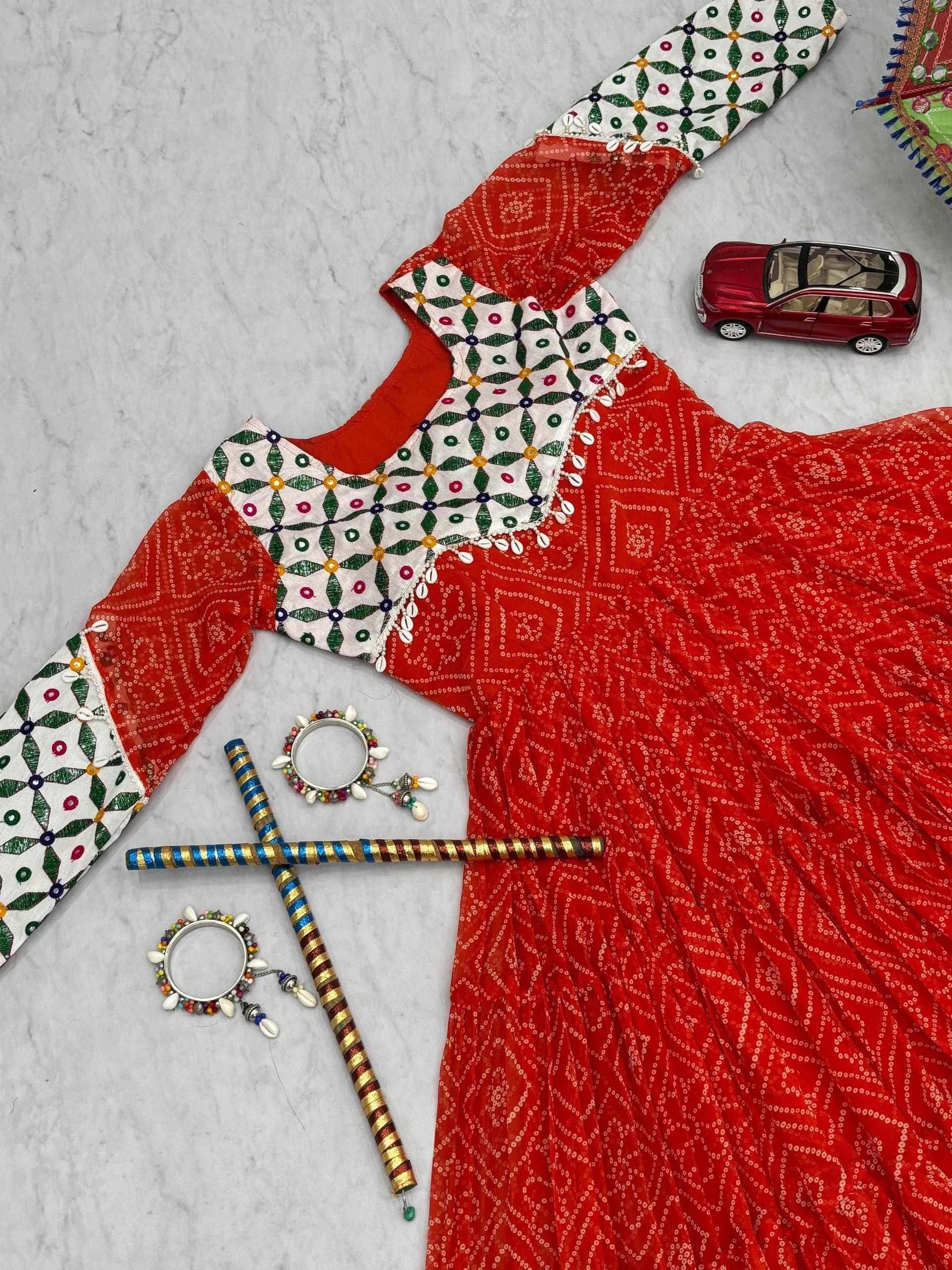 Pc N42 Fox Georgette Gamathi Work with Kodi Lace Navratri Special Gown has been successfully added to your cart .