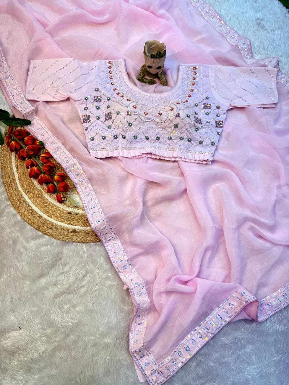 RC Party Wear Pink Crush Shining Saree With Beautiful Heavy Handwork