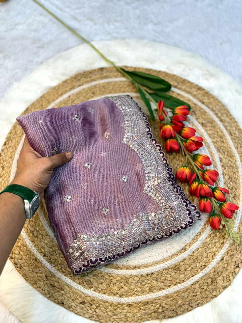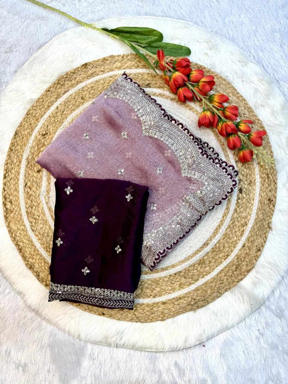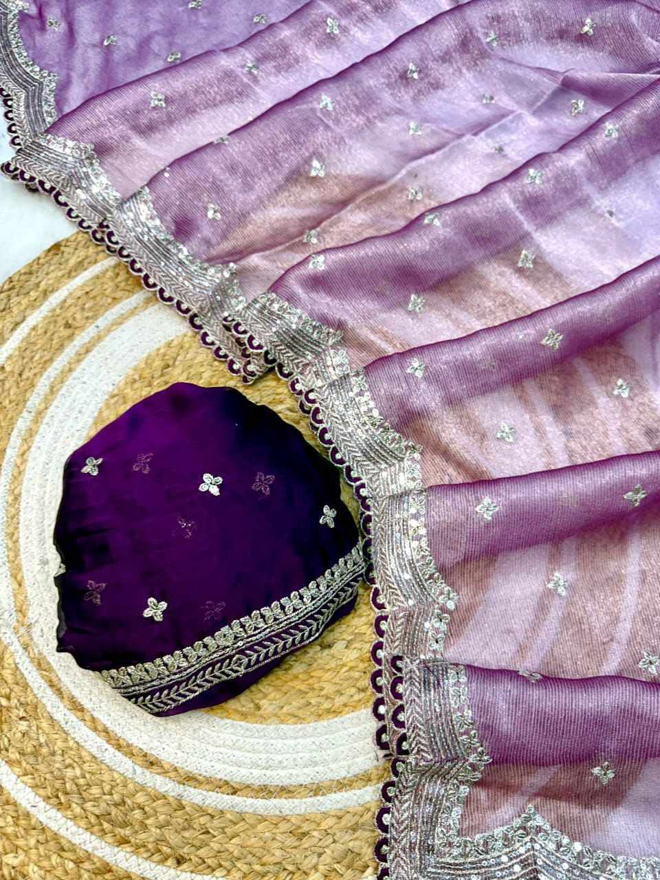 RC Purple Sitara Thread Embroidery Beautiful Saree