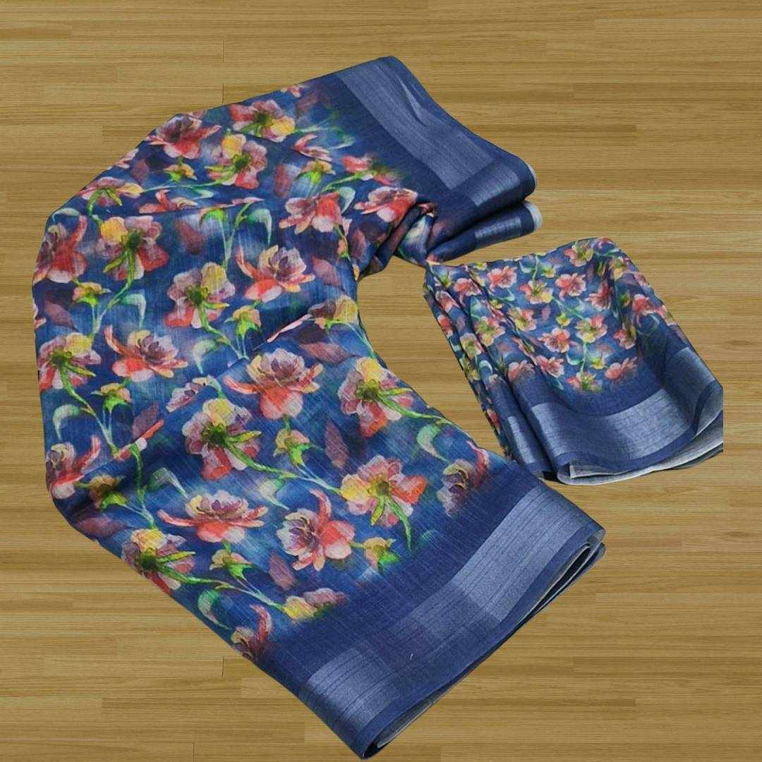 | Name : | S4S Linen Navy Blue Flower Digital Print Cotton Saree |