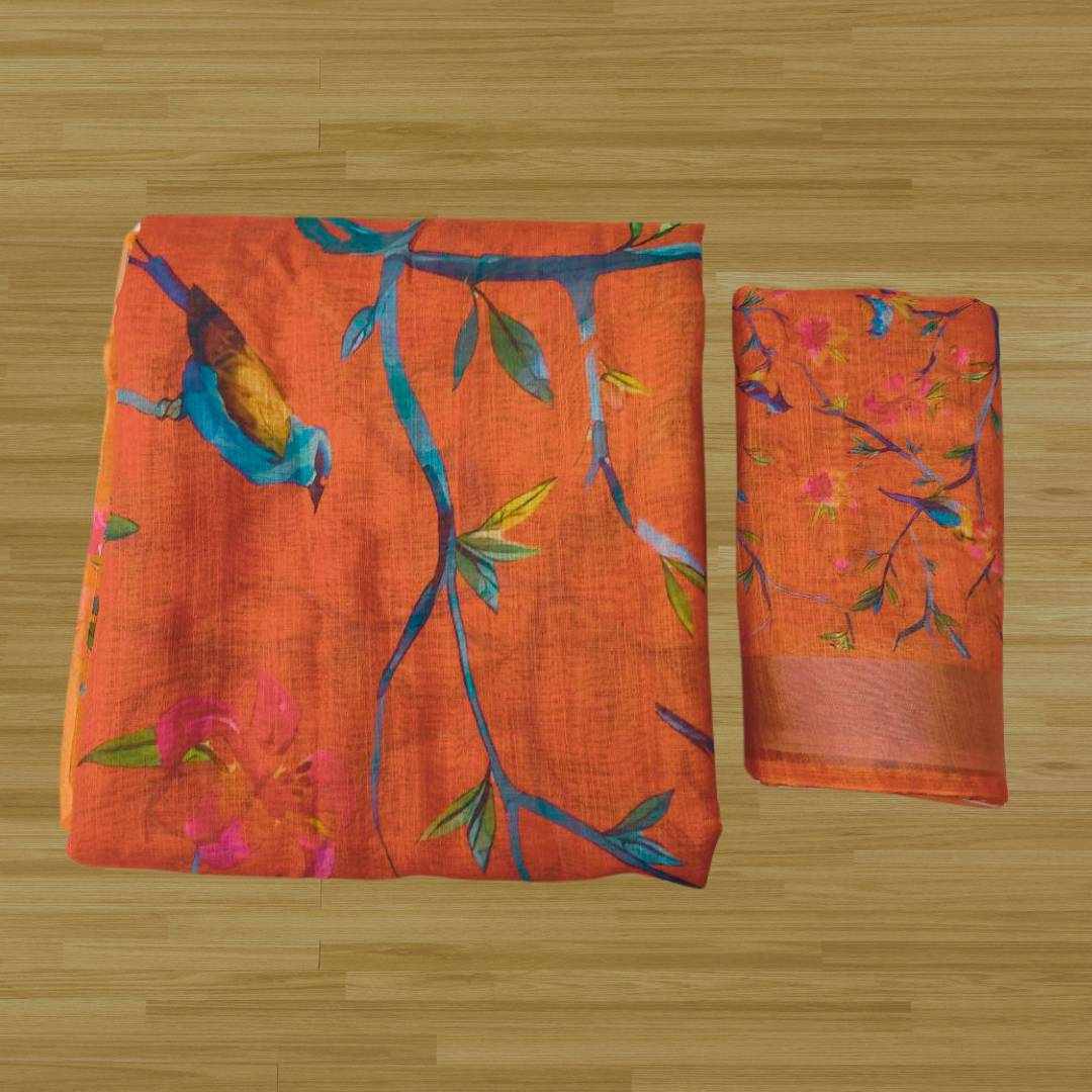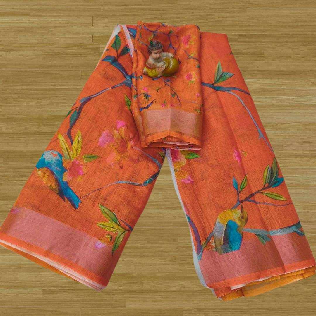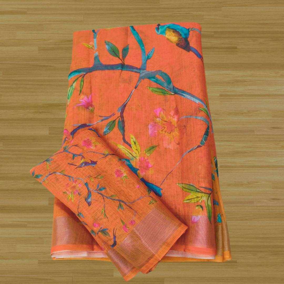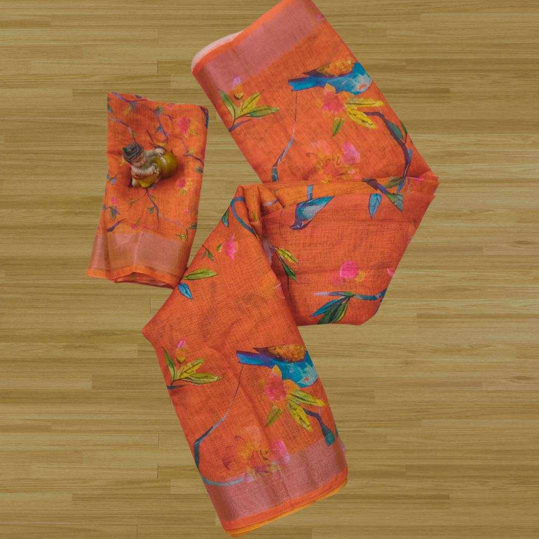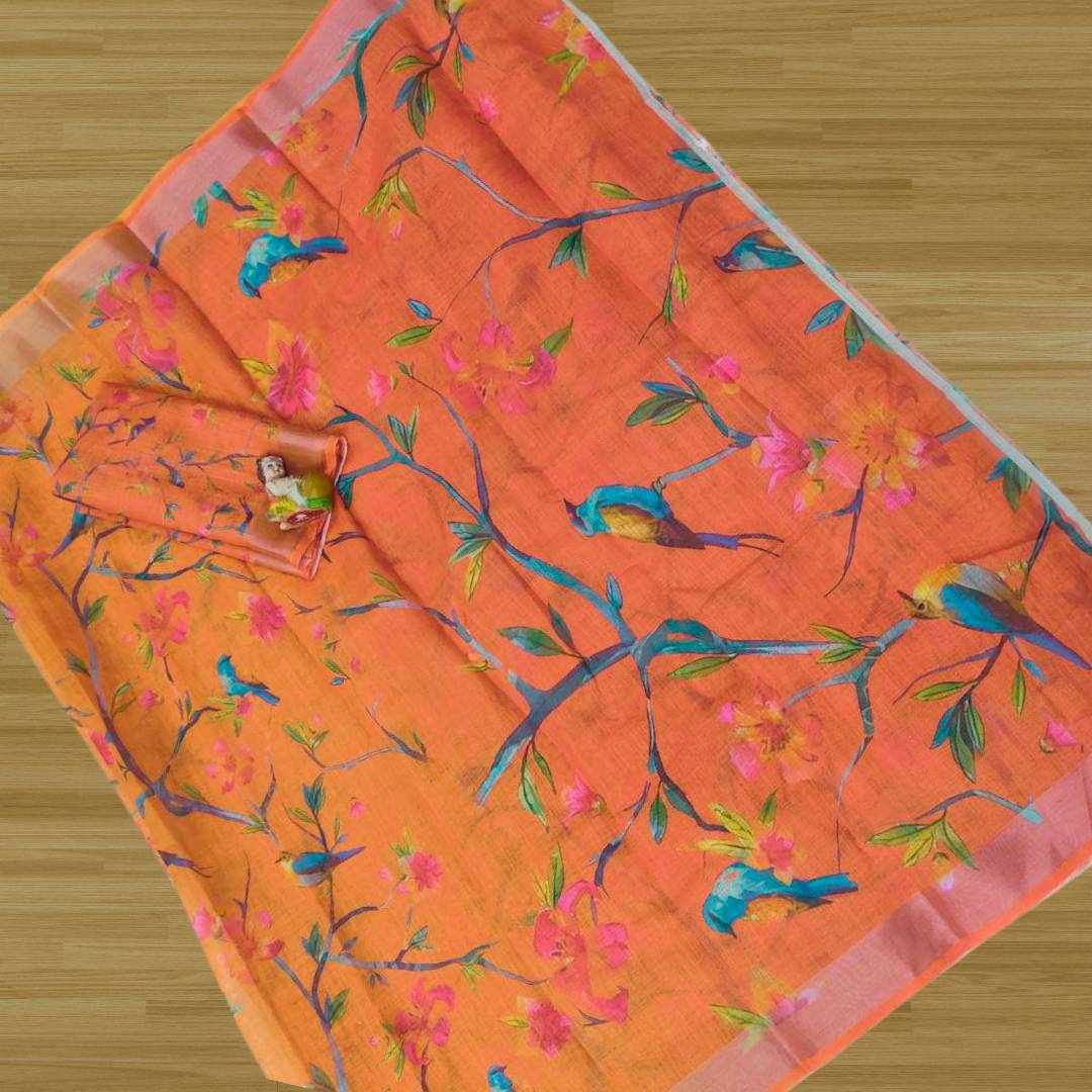 | Name : | S4S Linen Orange Bird Digital Print Cotton Saree |