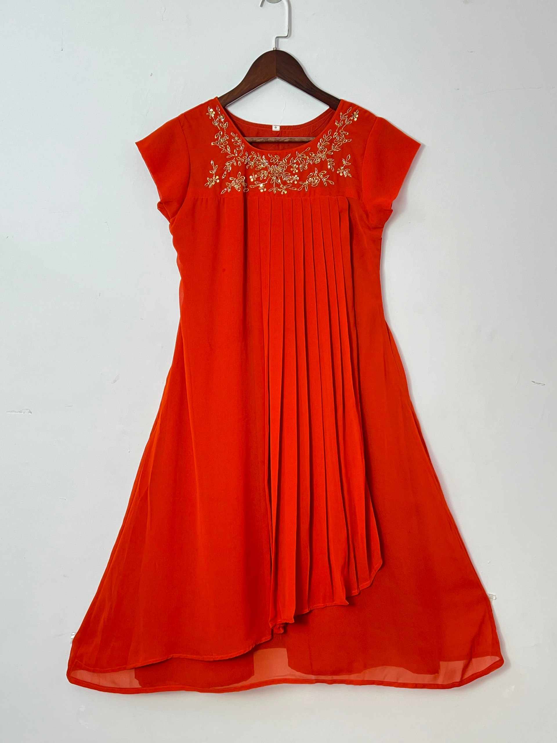 WM13 ORANGE BLOOMING GEORGETTE DESIGNER KURTI